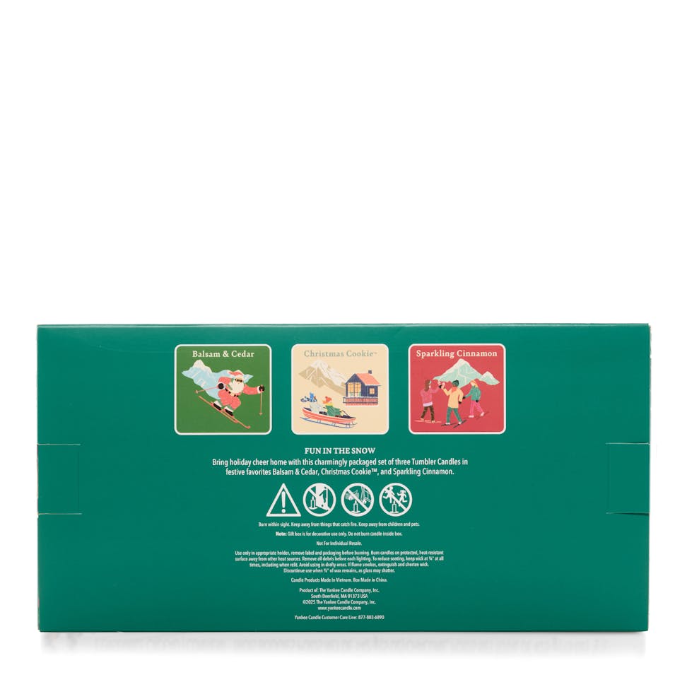 Bring holiday cheer home with this charmingly packaged set of three Tumbler Candles in festive favorites Balsam & Cedar, Christmas Cookie™, and Sparkling Cinnamon.