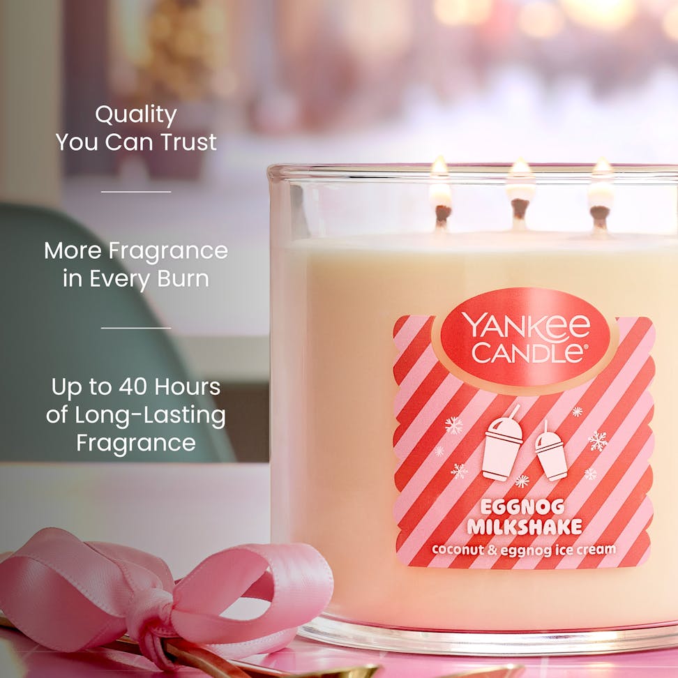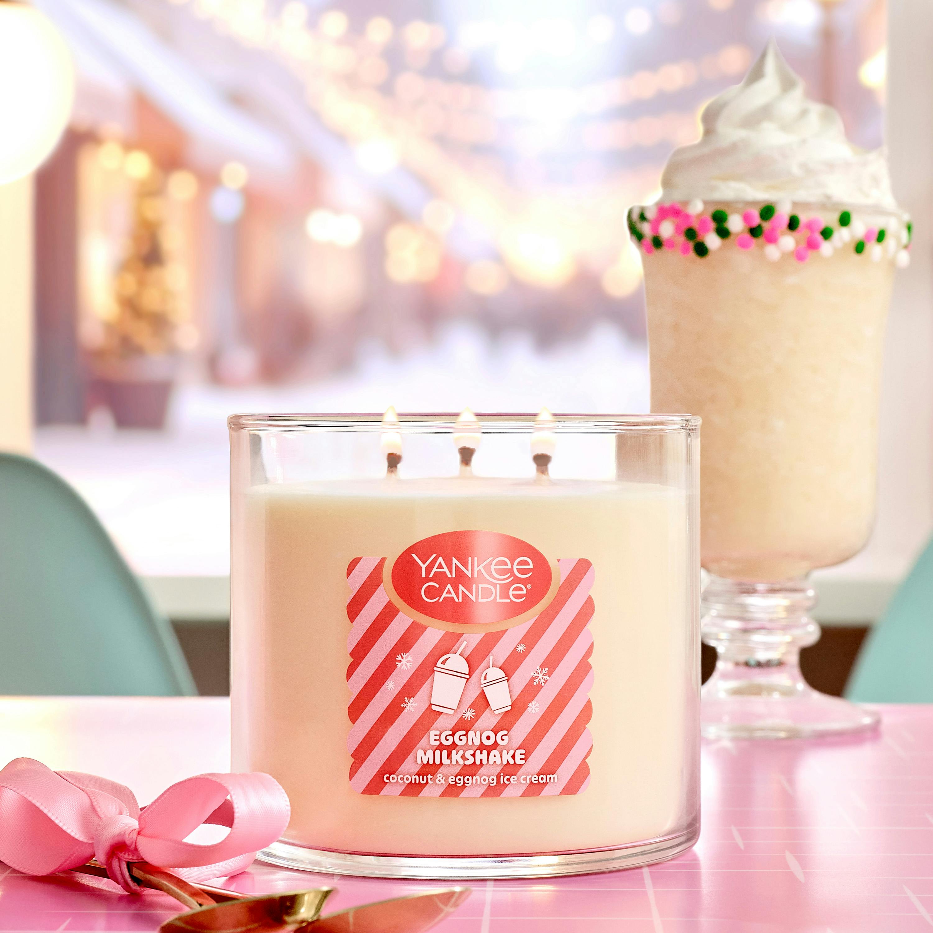 Frothy, creamy, and topped with sugar cookie crumbles, eggnog shakes are a taste of holiday happiness. Rich with notes of coconut cream, eggnog ice cream, and vanilla custard, the fragrance is a sweet delight.