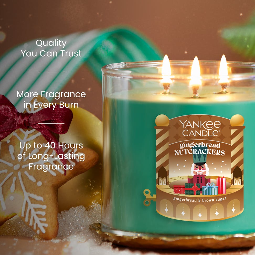 Delight in a dreamy gingerbread creation of frosted holiday nutcrackers all lined up in a row — a local baker’s crowning achievement. The top note of gingerbread leads the fragrance, which is warmed further by cinnamon and brown sugar scents.