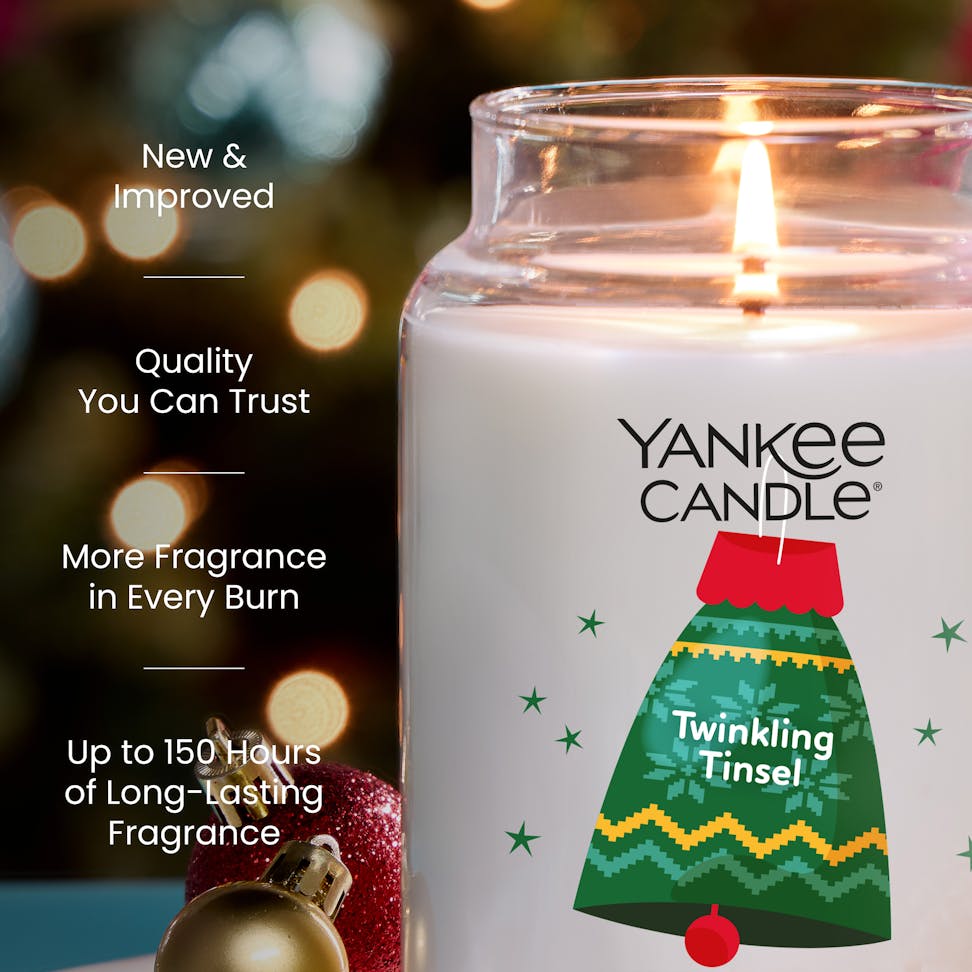 At your party, the Christmas tree glitters with silvery strands that catch every ray of colored light. Enjoy the fresh, happy scene with fragrant notes of frosted ginger, verbena blossom, and cedarwood.