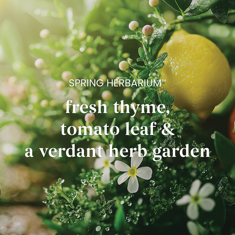 A vibrant garden of zesty citrus, fresh herbs, and delicate florals makes you feel at one with nature. This clean scent features notes of Meyer lemon, aromatic thyme, and tomato leaf.